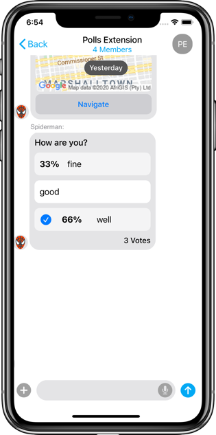 Apart from the above Poll-related details, the metadata will also contain incrementUnreadCount with value as true. This will be useful for incrementing the unread count every time a poll is received.