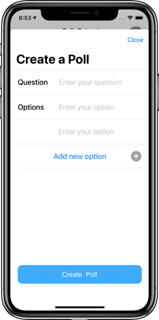 The options in the array are assigned an index appropriately (starting from 1). You can create a poll by using callExtension method provided by our SDKs: