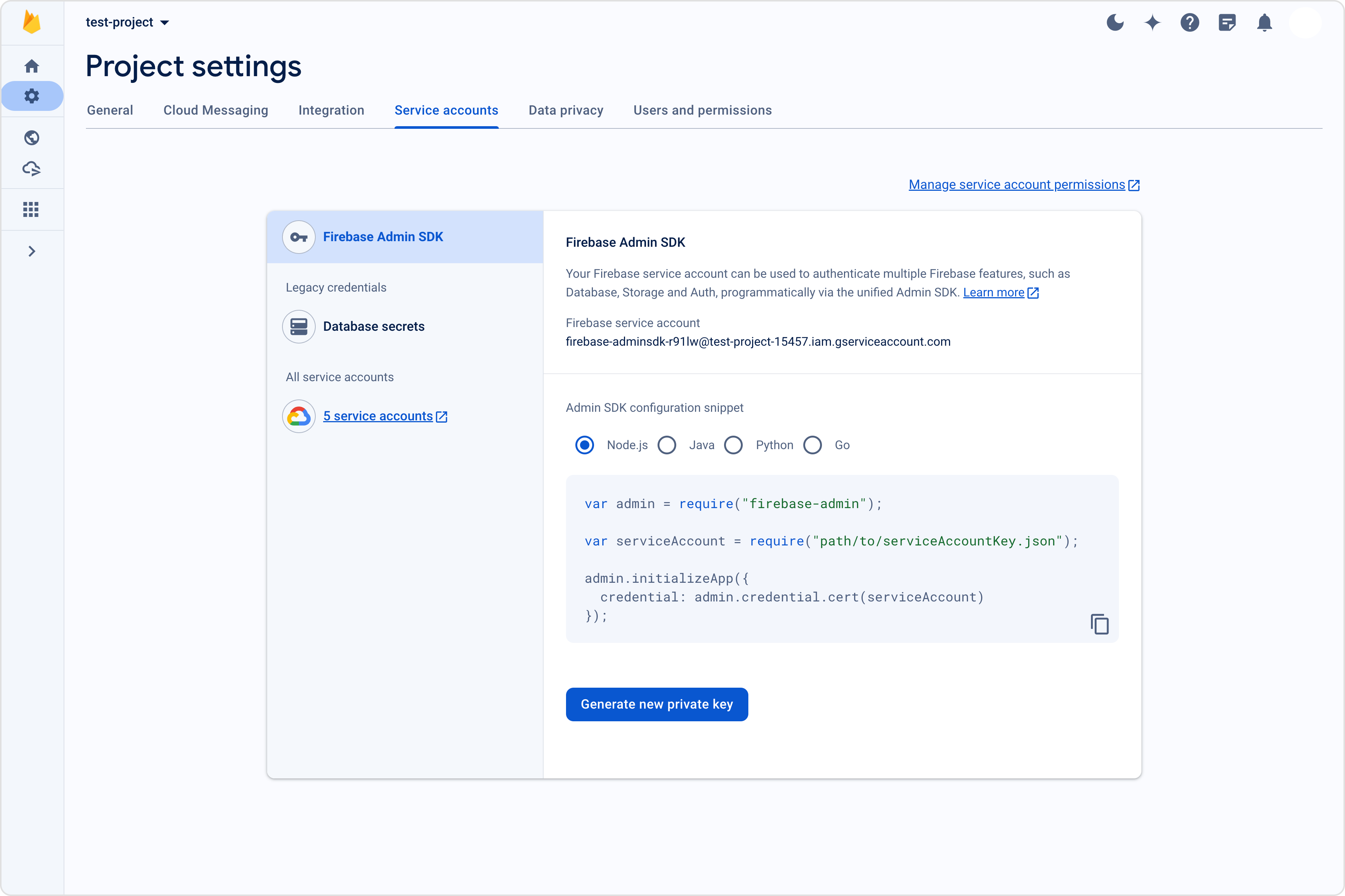 1. Go to the Firebase Console and click on the Web app and open up the Settings page.