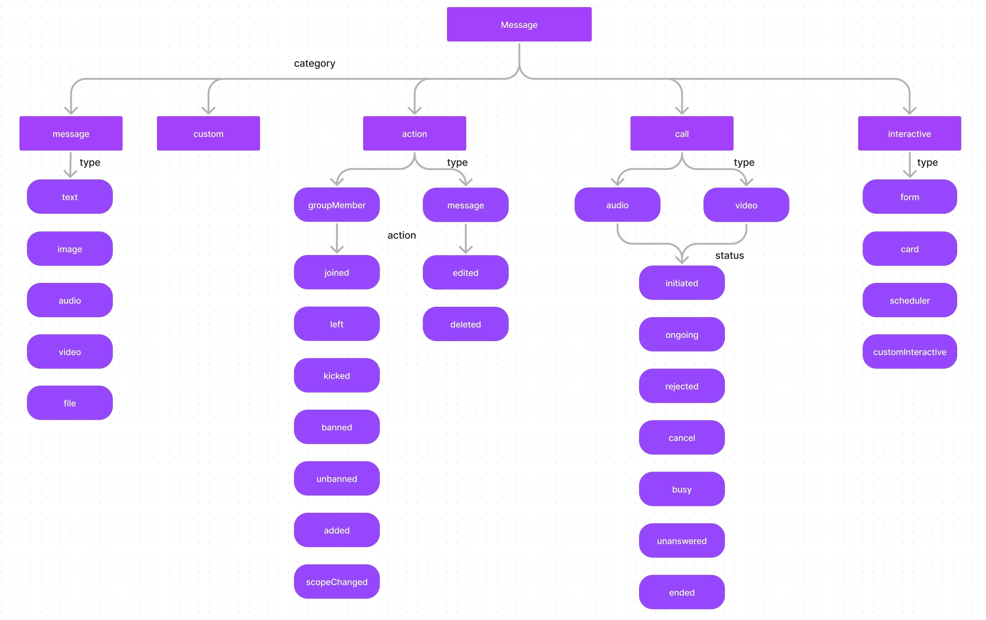 Action messages are system-generated messages. Messages belonging to theaction category can further be classified into one of the below types: