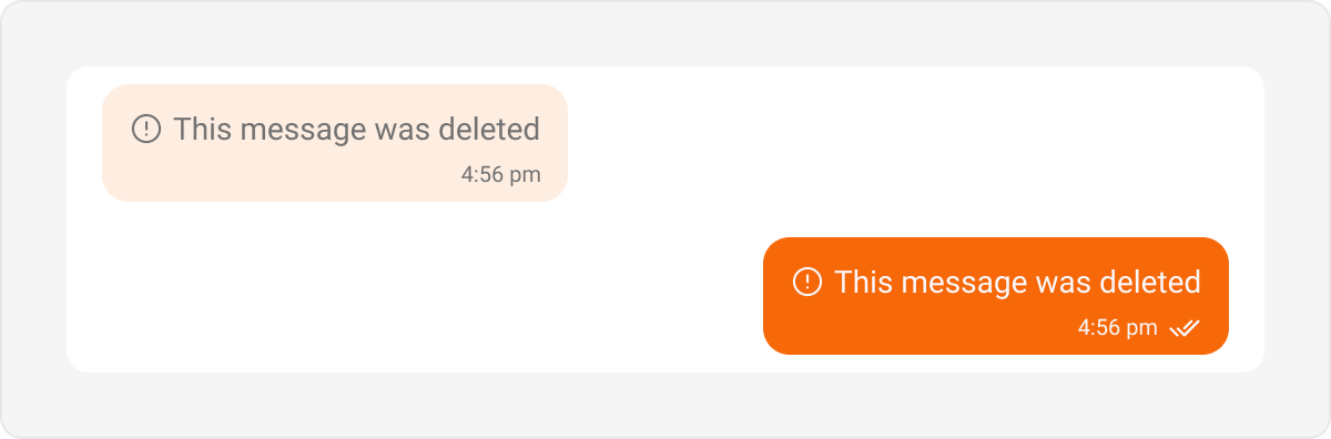 Delete bubbles are used to display messages that have been deleted by the sender. These indicate the message removal within the chat interface. Default