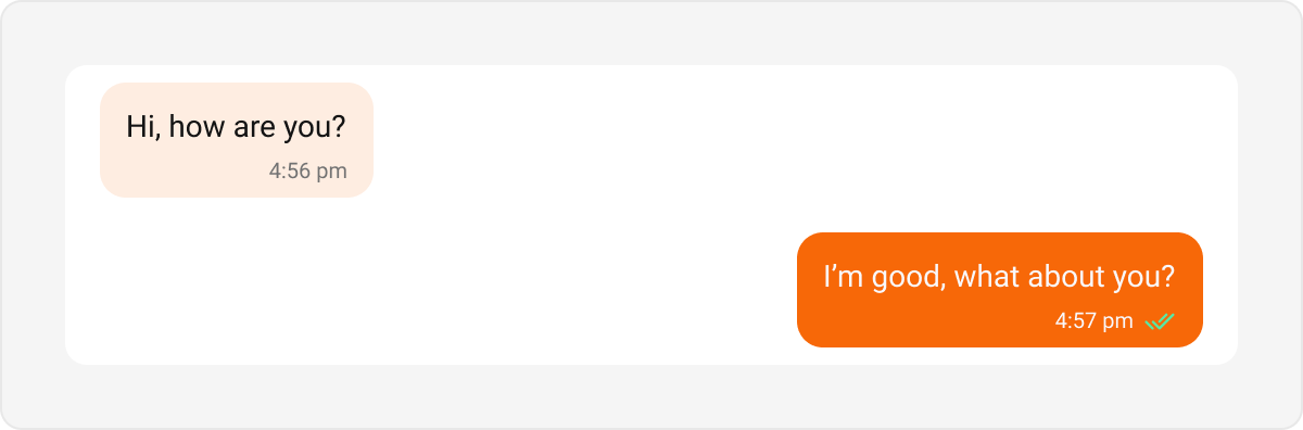 Message bubbles are core elements of the messaging interface. Their collective appearance can be customized to create a consistent design, including color, shape, and overall style for both outgoing and incoming messages. The message bubbles’ styles can be customized by extending the predefined styles in your themes.xml file. Customizing Incoming Message Bubble