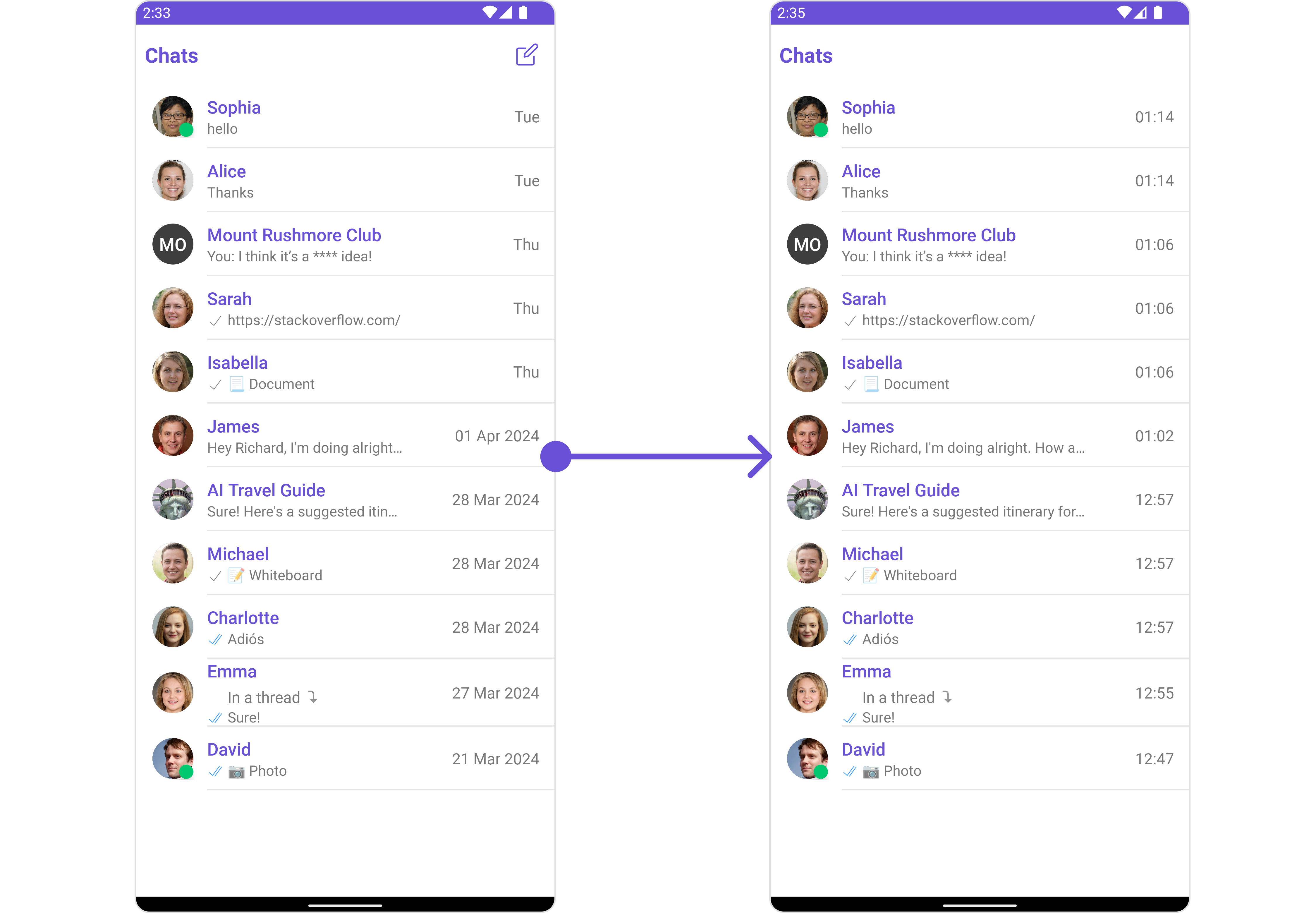 LastMessageText ColorUsed to set the color of the text for the last message.setLastMessageTextColor(@color int)