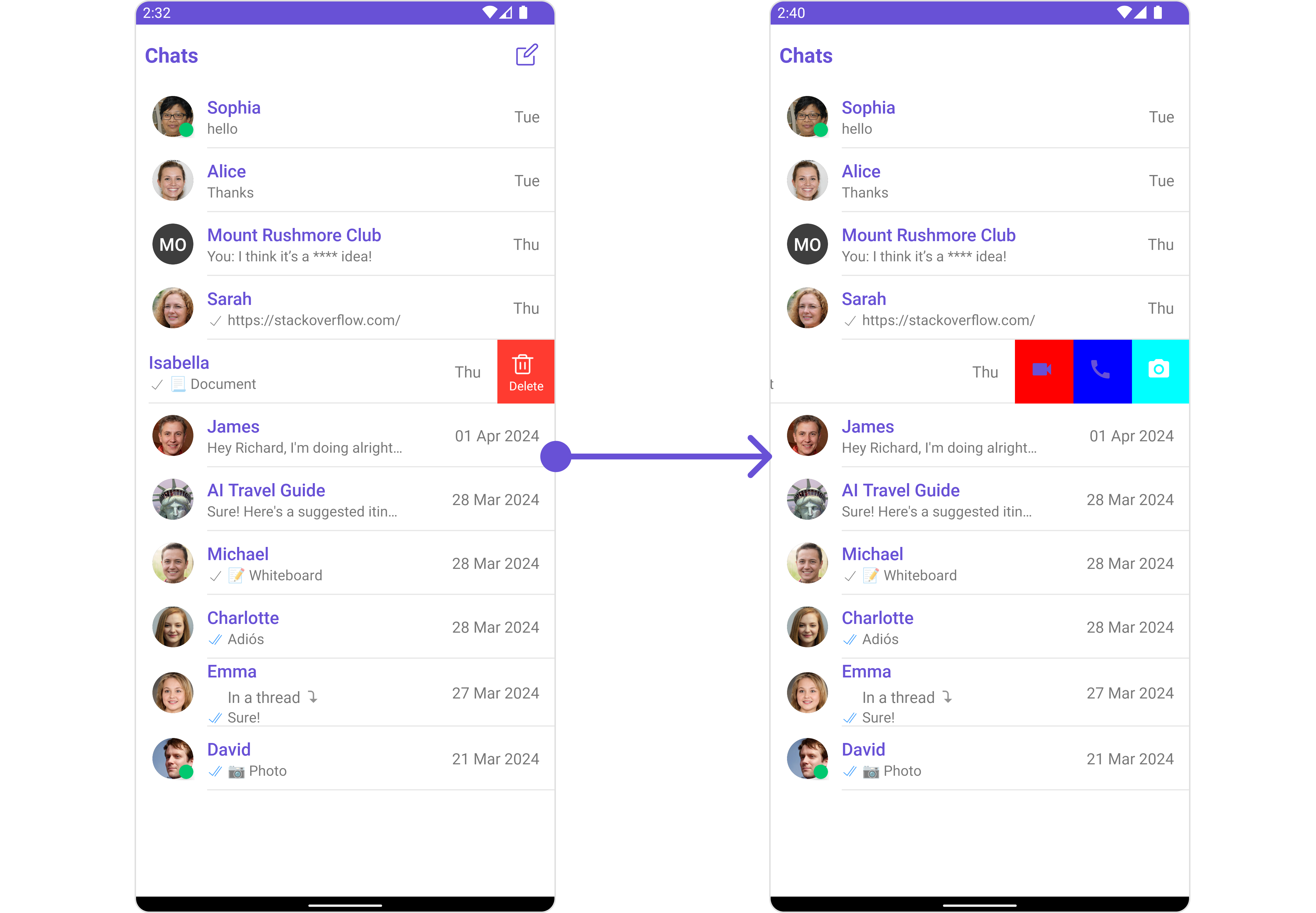 You can set a List of ‘CometChatOption’ for a conversation item to add your custom actions to the conversation. These options will be visible when swiping any conversation item.