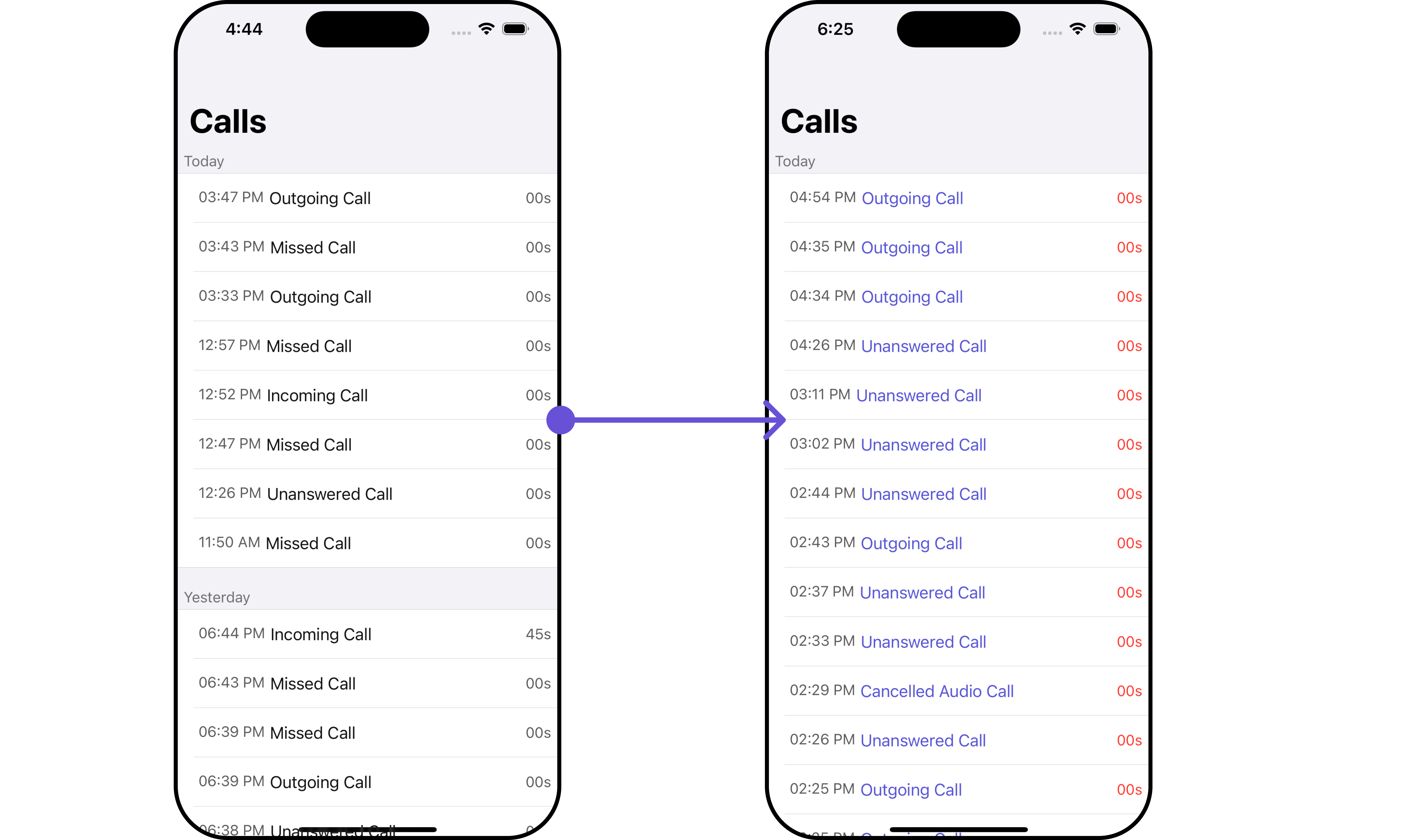 The callRequestBuilder enables you to filter and customize the call list based on available parameters in callRequestBuilder. This feature allows you to create more specific and targeted queries during the call. The following are the parameters available in callRequestBuilder Example In the example below, we are applying a filter based on limit , calltype and call status.- Swift